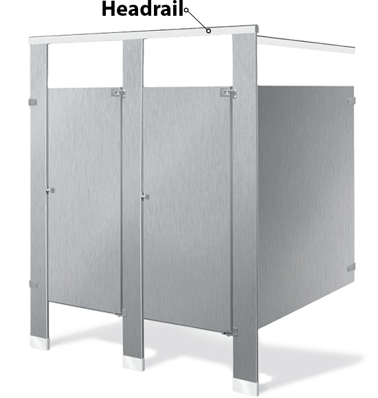 Toilet partition headrail connects the top of the pilasters and to the wall. This reinforces the stalls to prevent wobbling and make them more sturdy.