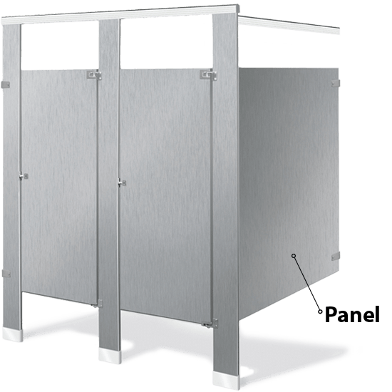 Toilet partition panels are the sides of a stall. Partition panels divide two compartments or toilets. These larges pieces typically establish a stall’s depth, running from entrance to the back wall.